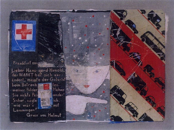 Lieber Hans-Gerd-Hunold (2), 60×80 cm, Acryl, Assemblage a. Holz 1998