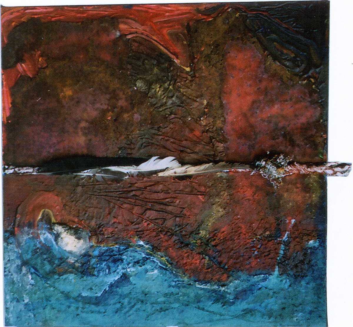 Über der Tiefe, 80×80 cm,Acryl, Fundstücke auf Holz (Assemblage),2008