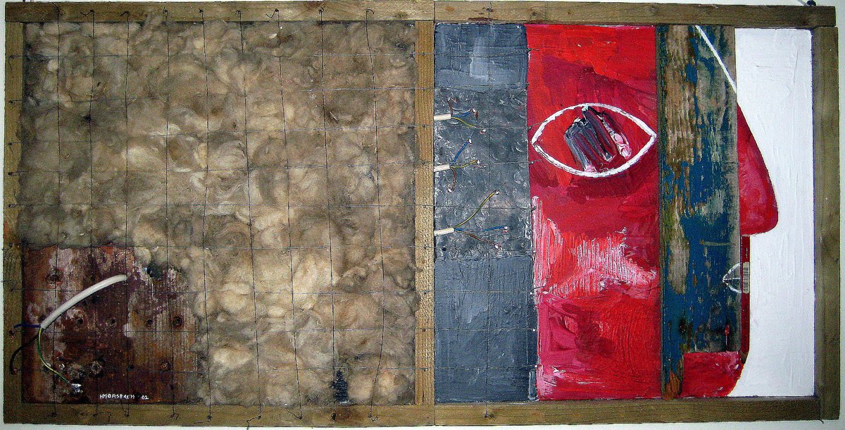 MEDIUM No. 218 Blackedge REXEL, 50×100 cm, Acryl, Assemblage auf Holz, ca.1998